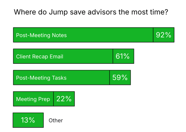The time-savings Jump feature most users agreed on was post-meeting notes, with over 90% of advisors surveyed saying this feature reduced their workload.
