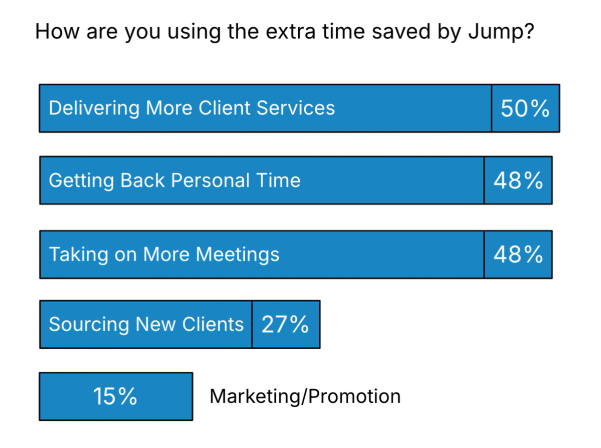 These responses paint a clear picture of how Jump is not only saving time, but also empowering advisors to focus on the areas that matter most. Whether that’s growth, service delivery, or simply creating space for personal priorities.