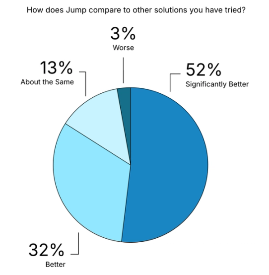 - 75% of users rated Jump as "easy" or "very easy" to use.
