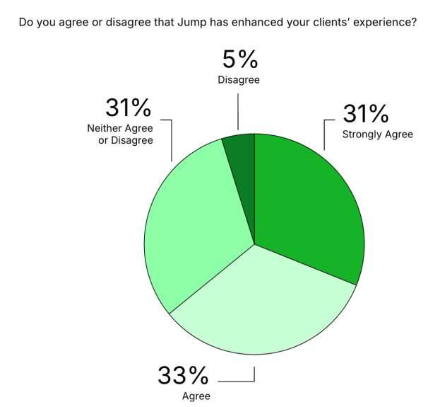 When asked whether or not they agreed Jump has improved the client experience for their own clients, 64% of survey respondents provided positive feedback.
