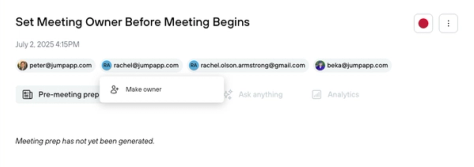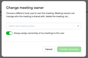 - Any Jump user can designate an owner for upcoming meetings directly from the meeting details.