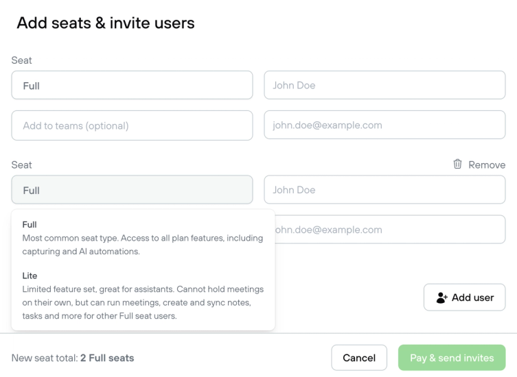 Lite seat users can now automatically assign a full seat user as the owner of their meetings, ensuring notes, recaps, and tasks are always processed and in the right place.