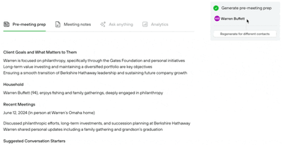 You can now reprocess pre-meeting prep and choose the contacts you want it generated for, giving you more flexibility in your meeting preparations.