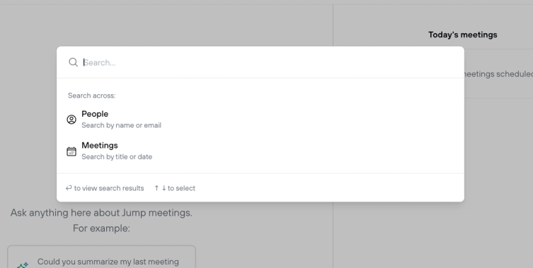We’ve revamped Jump’s Global Search to help you find what you need faster. Now, you can easily distinguish between People and Meetings with clear categories and enhanced search results.