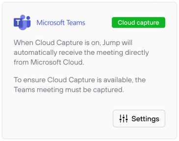 Need a quick, compliant way to capture your Microsoft Teams calls and bring them into Jump? With Teams Cloud Capture, you can now authorize Jump to connect seamlessly with Teams’ native meeting capture features instead of sending a Jump Notetaker bot to the call.