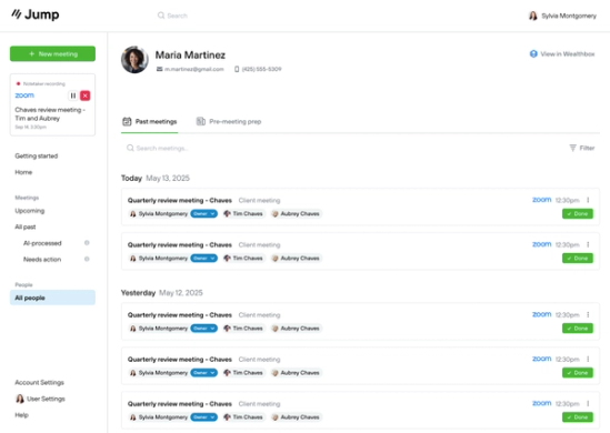 - Past Meetings: Quickly view past meetings in Jump involving that person.