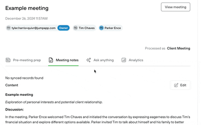 - Linking Participants to Jump People: When Jump doesn’t recognize a person in your meeting, you can link them to a Jump Person so that meeting appears on their detail page.