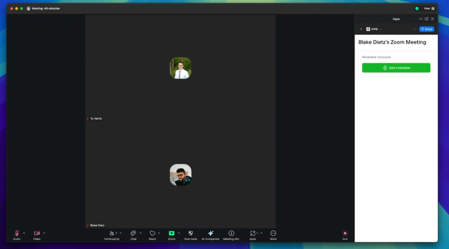 With our Zoom In-Client App, you can manage your notetaker—invite, remove, pause, or resume capture—right inside Zoom.