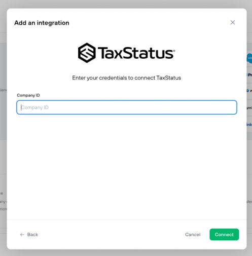 Add the TaxStatus integration from your Jump settings and enter your TaxStatus Company ID.