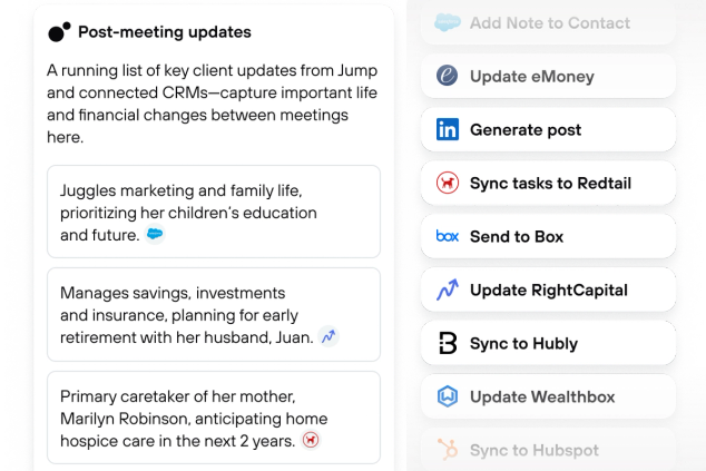 Run the meeting. Run the follow-up. Run the firm. Jump connects meetings, communications, and client data into one intelligent system.
