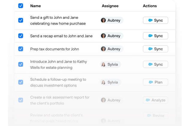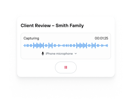 Turn conversations into trackable tasks and follow-ups that automatically sync to your firm’s workflows so nothing falls through the cracks.