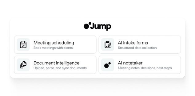 Firms paying for Calendly, OnceHub, or niche advisory tools can drop that line item entirely. Meeting scheduling lives inside the same platform as your meeting prep, notes, CRM sync, and follow-ups — so you're paying for one tool instead of three.