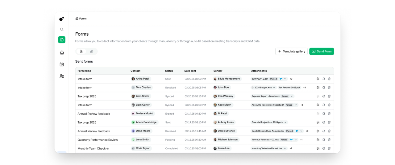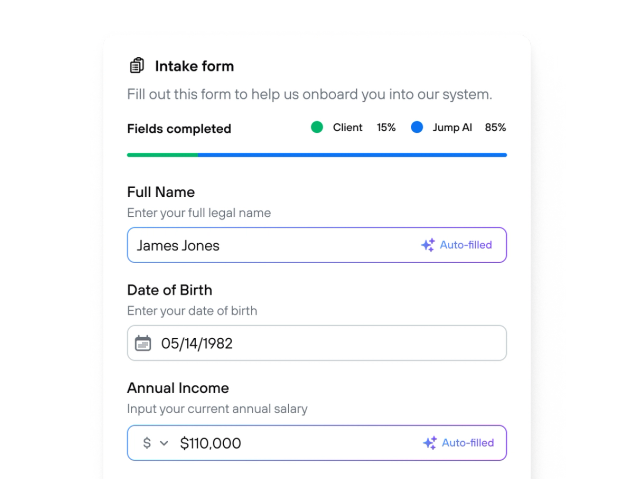 Send forms to clients to fill out, or have Jump auto-fill them based on meeting and integration data.