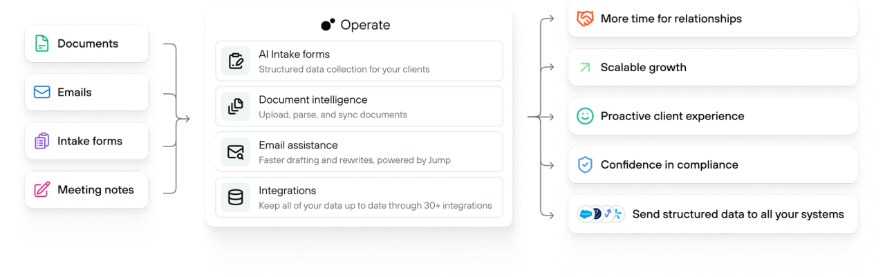 Jump Operate replaces manual checklists, fragile automations, and CRM workarounds with one system that runs your workflows—so your firm grows without adding complexity or headcount.